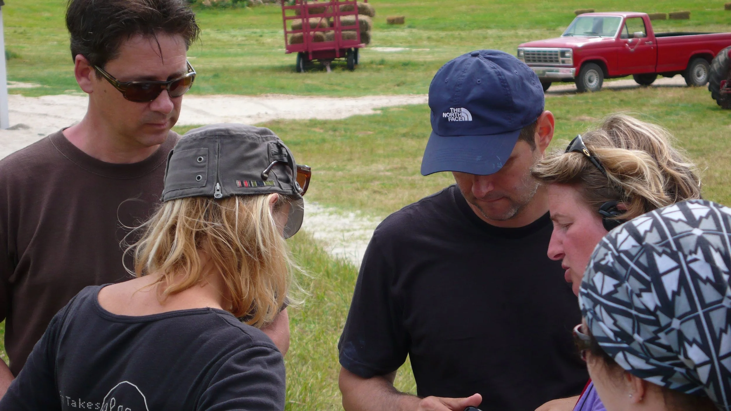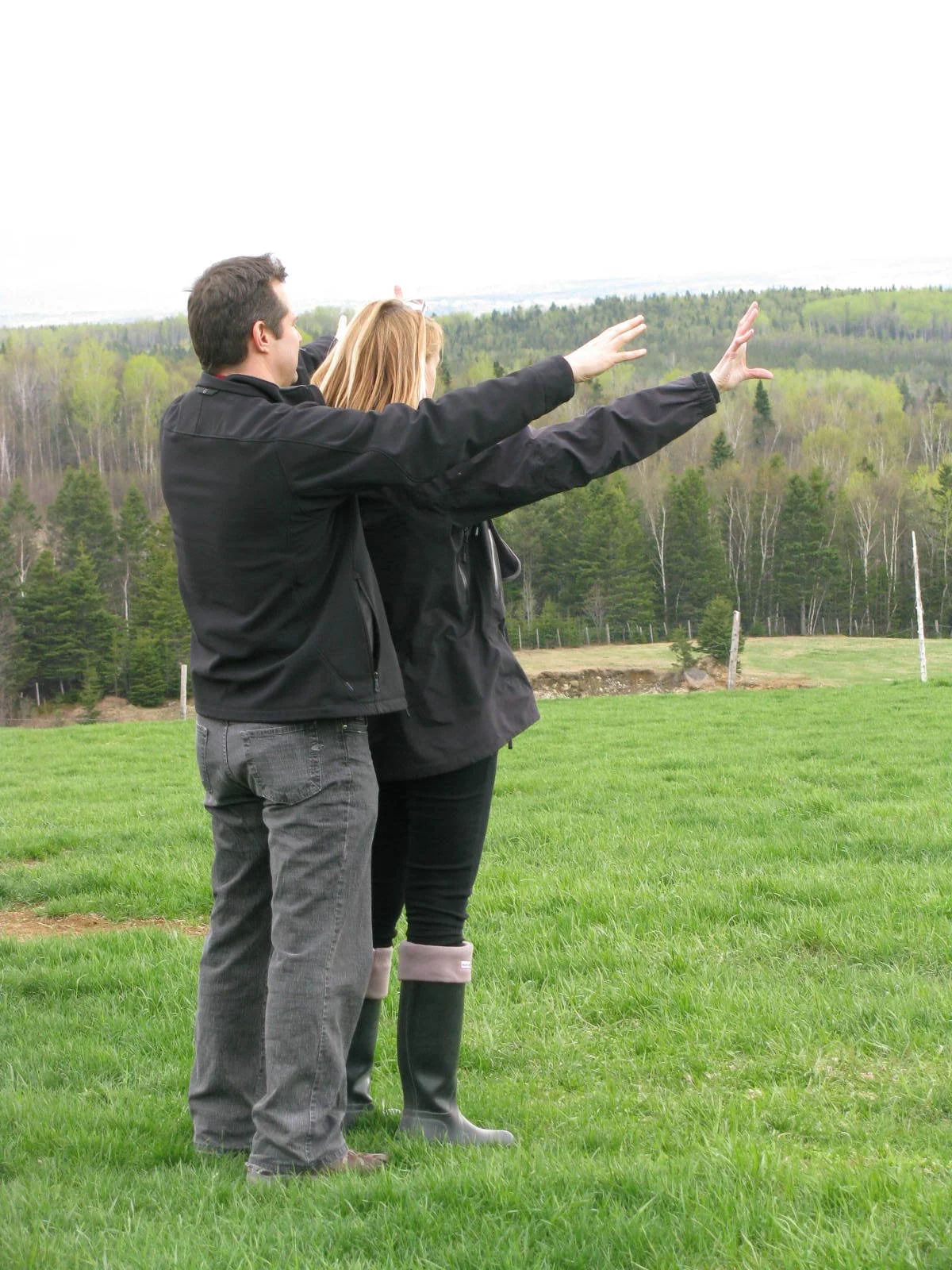 With director Emile Gaudreault envisioning the siteof the Farmsite build of the House, Barn , roads landscaping etc. on the vastsite in Baie Saint Paul, Qc. This was the start.